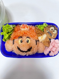 こんにちはジンのりょうです❣️ キャラ勉強作った🍱 マリオ🍄🌟の力作♥️ 果物は🍐とシャインマスカット🍇 疲れ果てた( ՞⌓°⎞